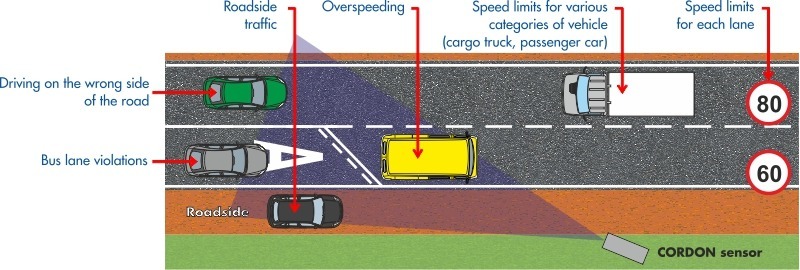 • Брой на контролираните пътни платна: от 2 до 6 ленти едновременно (стационарен монтаж), до 4 ленти едновременно (мобилен монтаж);