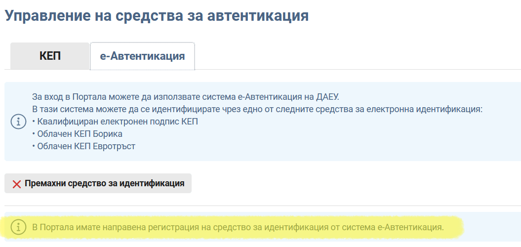 5. Тази стъпка е най-важна и объркваща за потребителите на новата система. Излезте от профила си. От началната страница изберете вход чрез КЕП или е-автентикация (в зависимост от вида автентикация, който сте избрали).