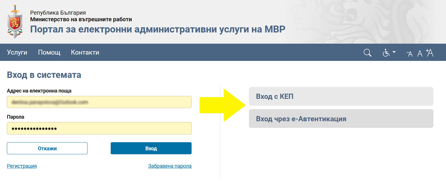 1. Трябва да се регистрирате в системата на МВР за електронни услуги с имейл и парола.