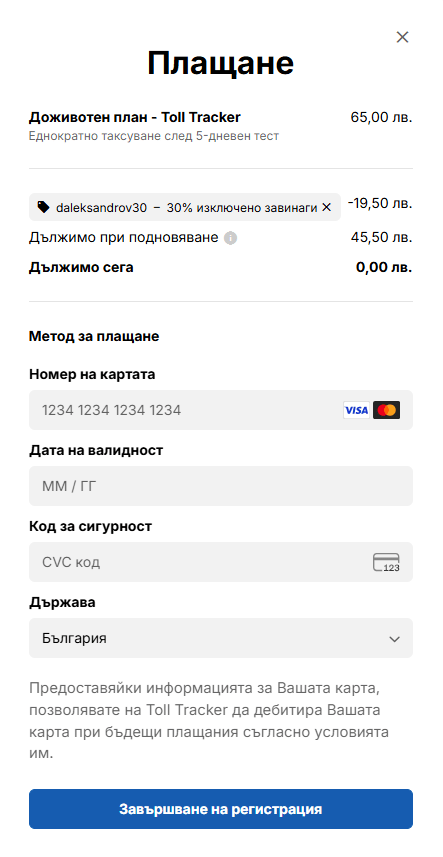 Имаме 30% ОТСТЪПКА от всички цени на приложението Toll Tracker с промо код 👉 daleksandrov30 👈