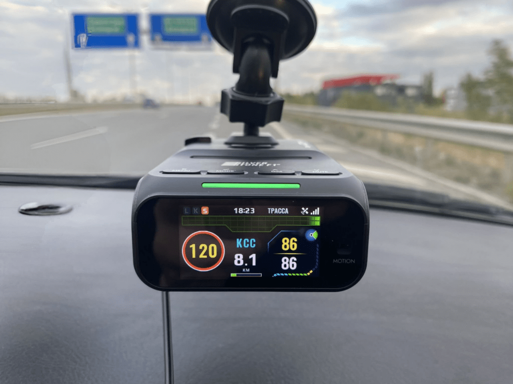 Цветния дисплей е много приятен и полезен, вижда се перфектно на слънчева светлина, когато сте в зона със Средна Скорост може да се ориентирате коя е средната Ви скорост и коя текущата по цвета на скоростта. Също и ограничението за дадената отсечка или стационарна камера се вижда доста добре.