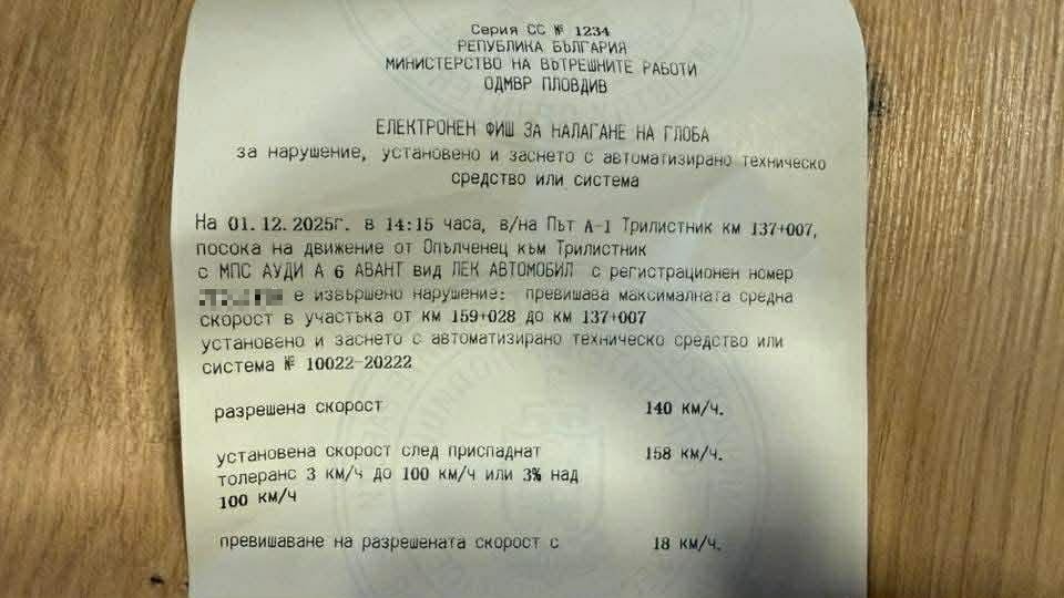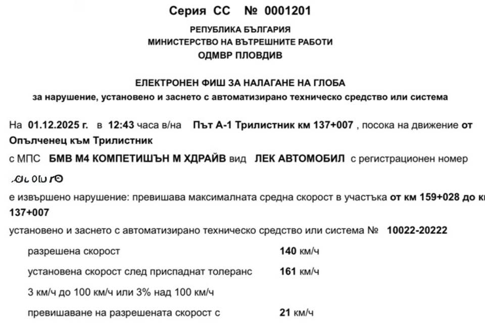 Здравейте, след толкова месеци от стартирането на Средна Скорост в България, вече имаме първите издадени фишове за тези нарушения.