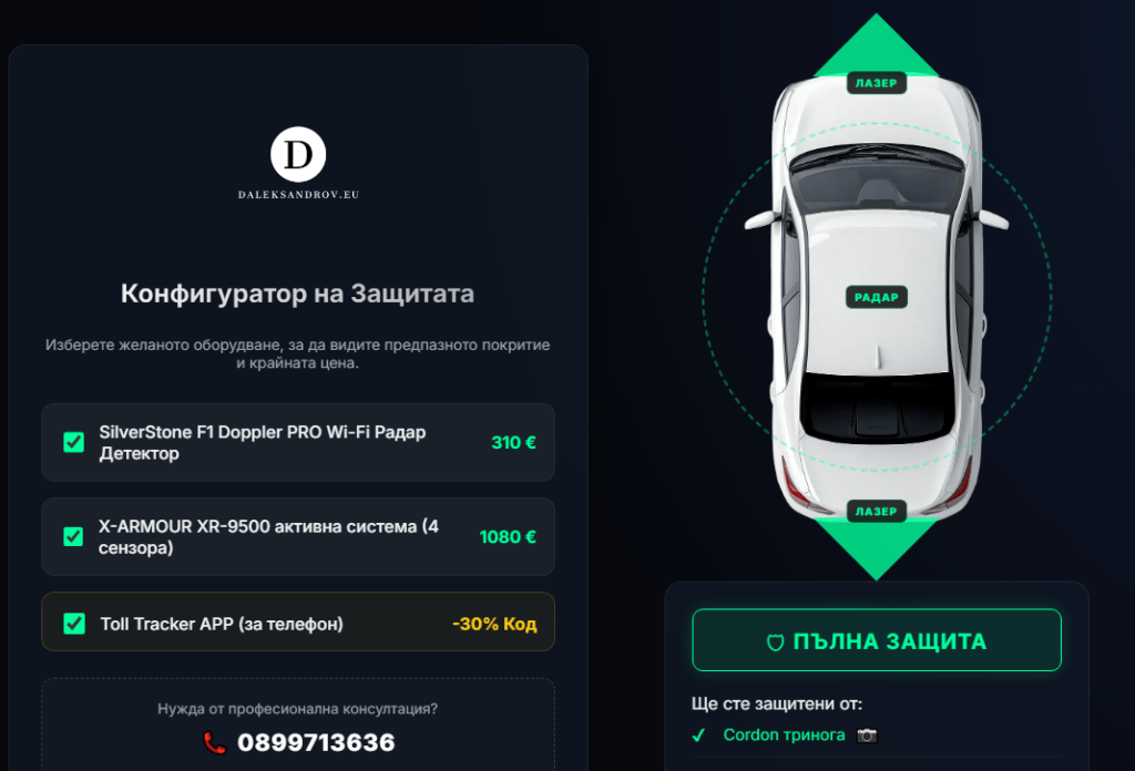 Конфигуратора дава визуална представа, коя система от какво Ви защитава, също така виждате имената на радарните уреди и до тях имате и опция да видите истинска снимка на самите радарни уреди.