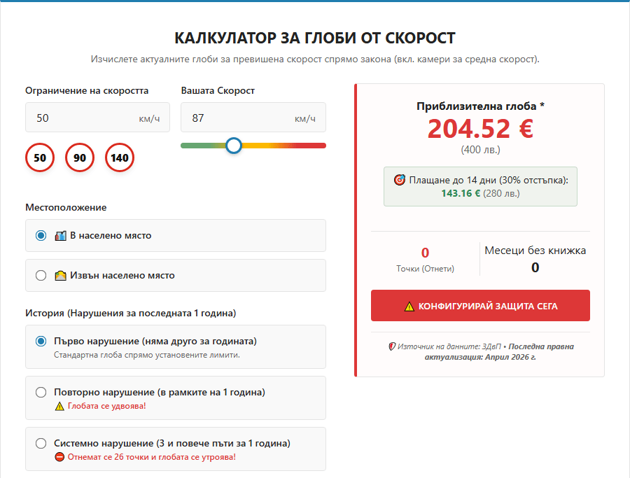 НОВО: Калкулатор за Глоби от Скорост в сайта