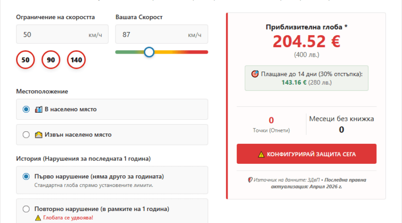 НОВО: Калкулатор за Глоби от Скорост в сайта